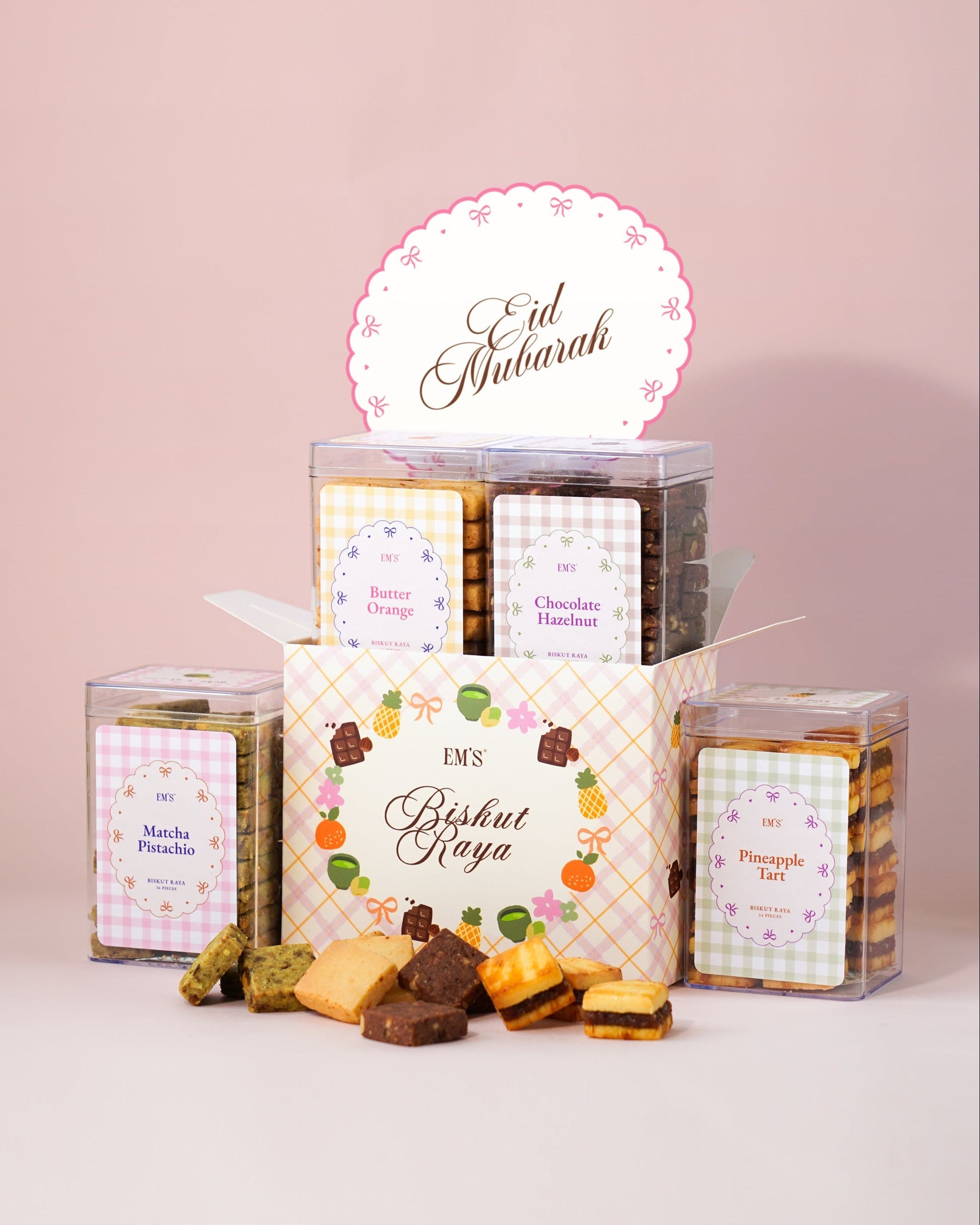 Dive into an indulgent festive treat with our 2026 Biskut Raya Set — a crunchy collection crafted specially for Raya. Unlike EM’S classic soft cookies, these biskut are intentionally baked for a satisfying crunch with every bite, offering a lighter, delicate texture that’s perfect for festive snacking and gifting.